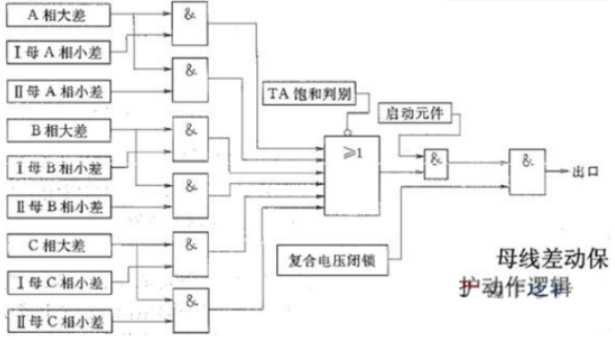 母線槽差動維護的動作邏輯: