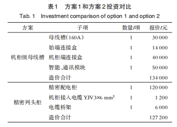 針對方案1和方案2不同機柜結(jié)束配電方案,兩者的出資造價對比如下,如附表1所示。