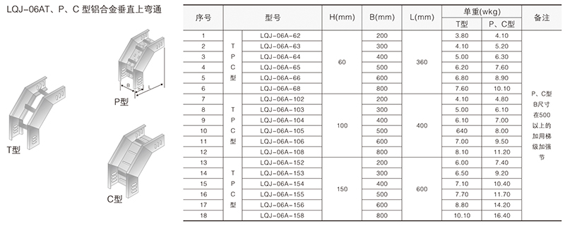 鋁合金電纜橋架在某種結構形式中無其它結構形式中的某-種產品類別,選型可作代用表示。例如:在LQU-CC型槽式鋁合金電纜橋架結構形式中,無鋁合金配線橋架中的LPC-03D, 即表示為LFC-CC-03D。